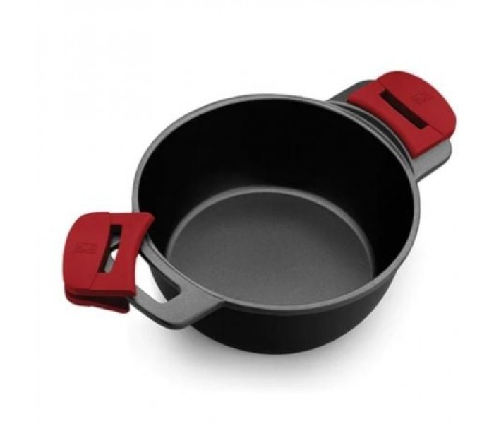 - Incluye tapa de cristal con pomo termo resistente y dos asas de silicona en color rojo.