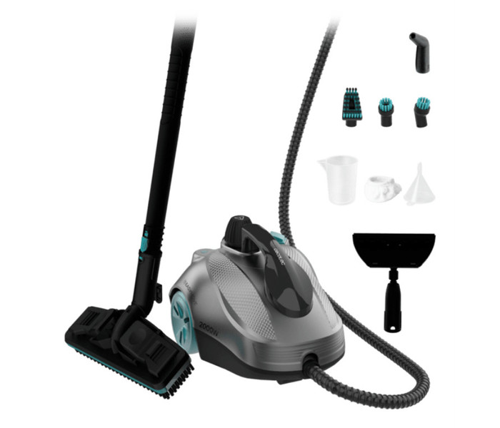 Acaba con cualquier rastro de suciedadGracias a sus 2000 W limpia en profundidad sin problemas y elimina hasta el 99,9 % de las bacterias.Limpieza continua y duraderaCon su amplio depósito XXL de 2 L, realizarás una limpieza profunda sin necesidad de estar rellenando el depósito continuamente.Limpieza total sin paronesUtiliza la vaporeta hasta 150 minutos sin necesidad de interrumpir su funcionamiento y hasta 35 minutos en caudal máximo para hacer frente a todos tus retos de limpieza.Experiencia completaLa vaporeta cuenta con un kit completo de 16 accesorios (limpia suelos, superficies metálicas, tapicerías, ventanas, rejas, ventanas, etc.) para acabar con la suciedad en cualquier superficie.Adiós a la suciedad incrustadaGracias a sus 5 bares de presión, elimina hasta con la suciedad más incrustada sin problemas y presume de superficies limpias y desinfectadas.Desplazamiento sencilloCon su función EasyMove, podrás mover y desplazar fácilmente la vaporeta gracias a sus ruedas de transporte.Movilidad totalLlega a cualquier rincón cómodamente con su cable de 7,5 metros de rango de acción.Calentamiento rápidoConsigue un calentamiento rápido de 1L de agua cada 4 minutos y supervisa todo el proceso gracias a su indicador de calentamiento.Limpia y desinfecta rápidamenteSu gran caudal de vapor de 60 g/min actúa eliminando la suciedad en todas las superficies y muebles de tu hogar.