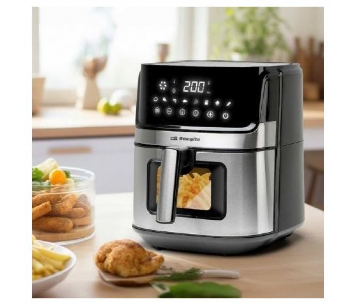 El frontal con detalles de acero inoxidable no solo aporta un toque de elegancia a la cocina, sino que también garantiza durabilidad y resistencia al desgaste. La pantalla LED con control táctil permite un manejo intuitivo y sencillo, haciendo que la operación de la freidora sea tan fácil como tocar un botón. La pantalla muestra claramente el tiempo y la temperatura de cocción, proporcionando un control total sobre el proceso.