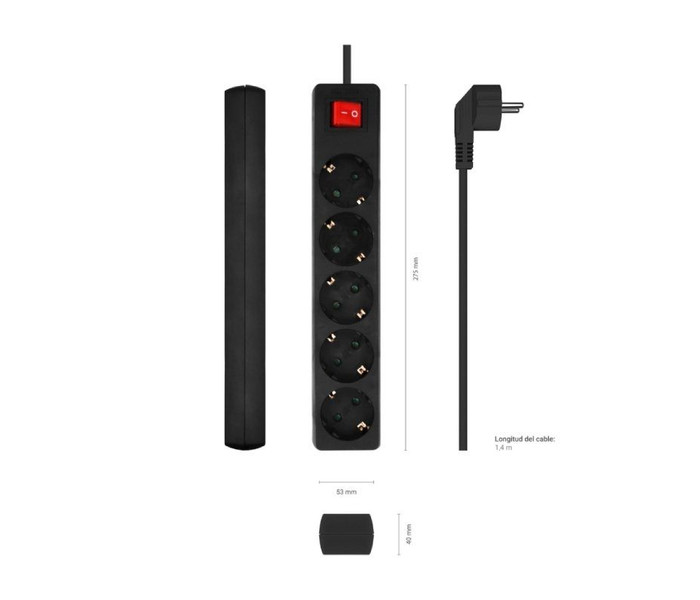 REGLETA LANBERG 5 TOMAS SCHUKO CON PROTECION NEGRA 1.5M