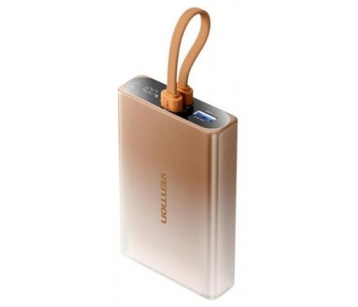 La batería externa Vention destaca no solo por su funcionalidad, sino también por su diseño único. Su carcasa con acabado mate recuerda a una paleta y está disponible en cinco llamativos colores: rosa, azul, dorado, amarillo y gris. Su elegante diseño combina a la perfección con su durabilidad. El cable integrado está hecho de un material trenzado resistente a los daños.