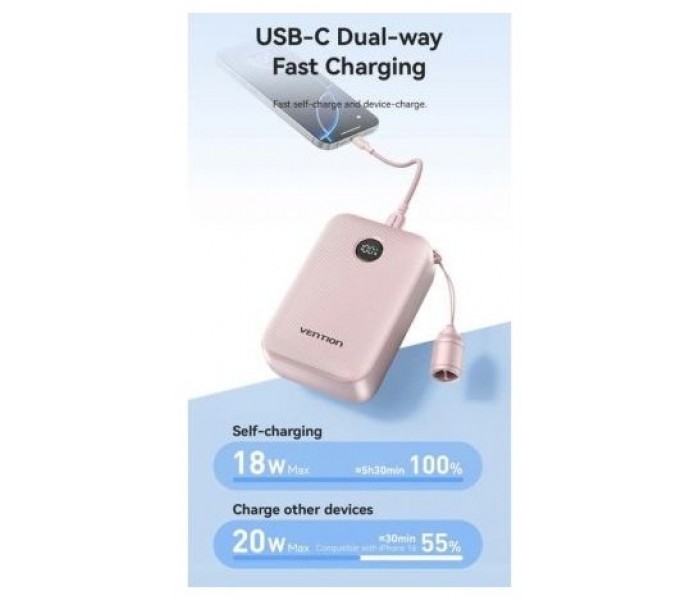 Powerbank 10000mAh Vention FHOB0/ 22.5W/ Negra/ Incluye Cable USB TIpo-C y Lightning Especificaci..
