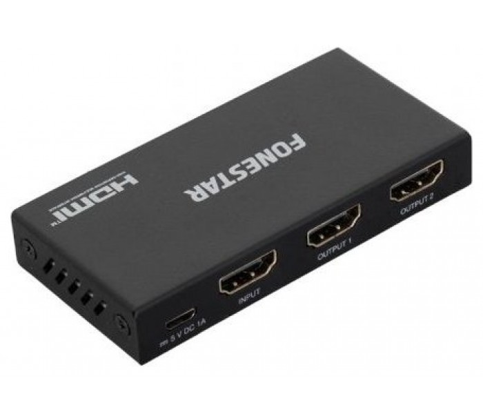 Distribuidor HDMI 2.0 (1 entrada x 2 salidas).Distribuye la misma imagen en varias TV. Se puede mostrar el mismo contenido de vídeo y audio en diferentes TV para ser visto por más personas.