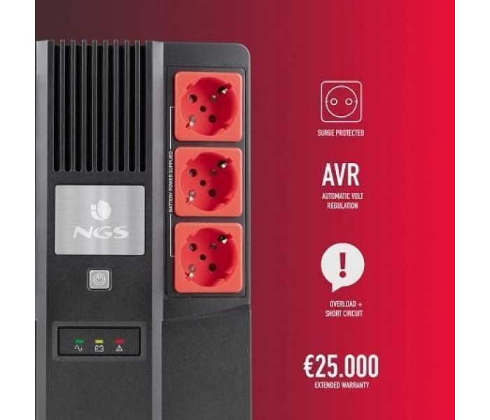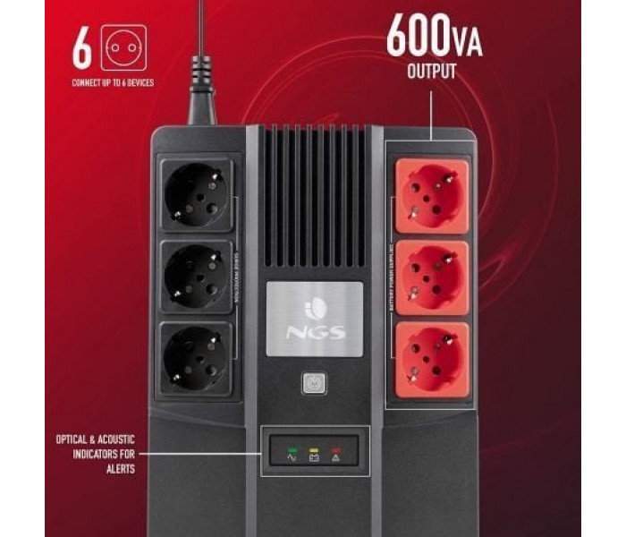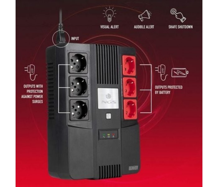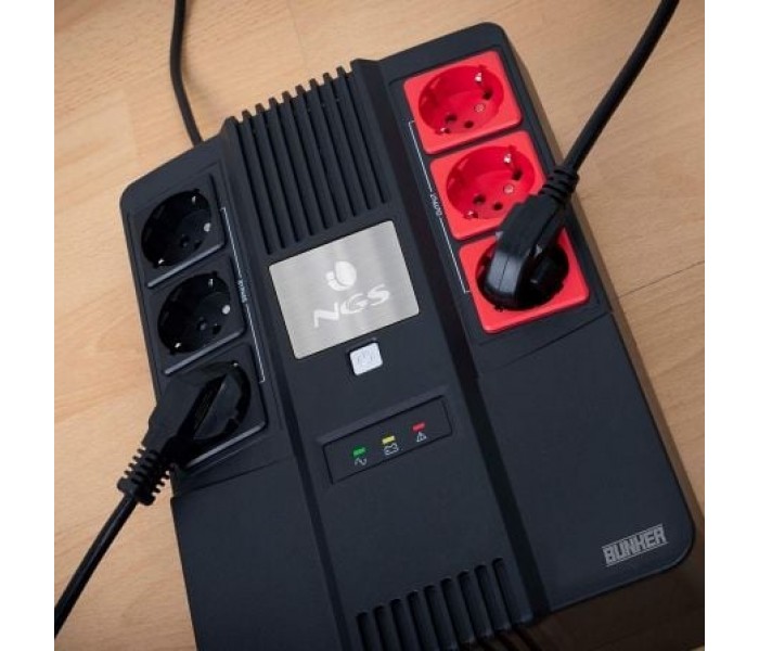NGS Fortress Bunker, es un SAI (sistema de alimentación ininterrumpida) de 600VA (360W) con baterÃa de 12V/7 incorporada que asegura protección eléctrica completa en entornos ofimáticos neutralizando las nefastas consecuencias de las sobrecargas en la red y variaciones de tensión.