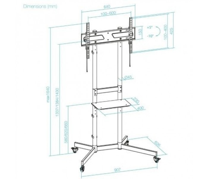 - Ajuste de altura en 3 posiciones: 1337mm; 1384mm; 1430mm