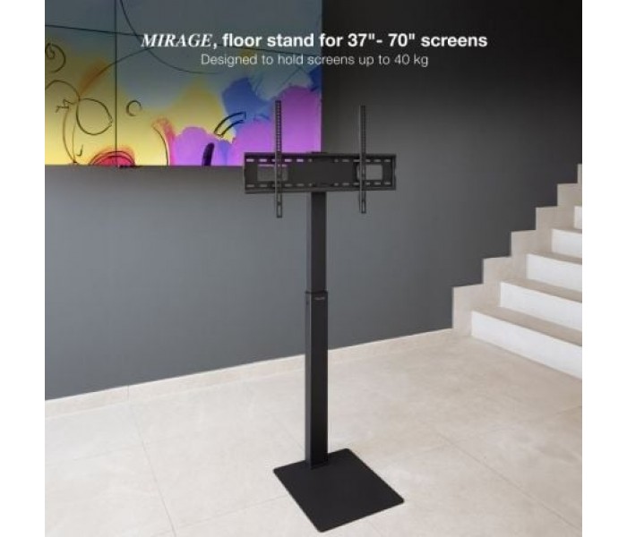 Mirage Soporte de Suelo para Pantallas de 37?-70?Resistente, estable y seguro. Cuando necesitas asegurar tu pantalla para poder mostrar tu contenido audiovisual, Mirage siempre será tu mejor aliado. Además, puedes mover su VESA para regular la altura. ¿Quién da más?