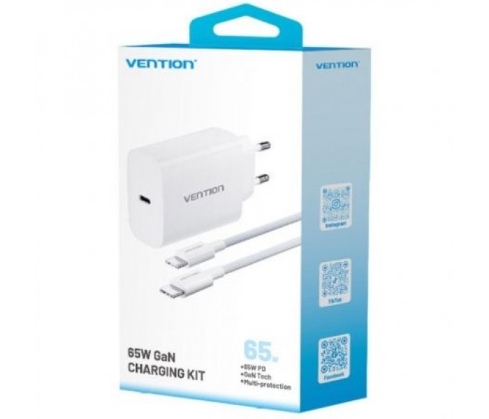 Vention Cargador USB-C 65W con Cable 1m 3A G14W0-EU - Blanco