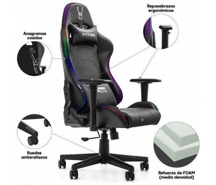 Silla gaming ergonómica con iluminación Led configurable en color mediante APP