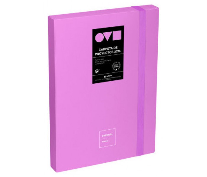 Caja proyectos Unequal Minimal color lavanda. Esta caja de proyectos tiene unas cubiertas realizadas en polyfoam, material resistente y ultraligero, tamaño folio, apertura 360º, cierre con goma plana y lomo de 30 mm.