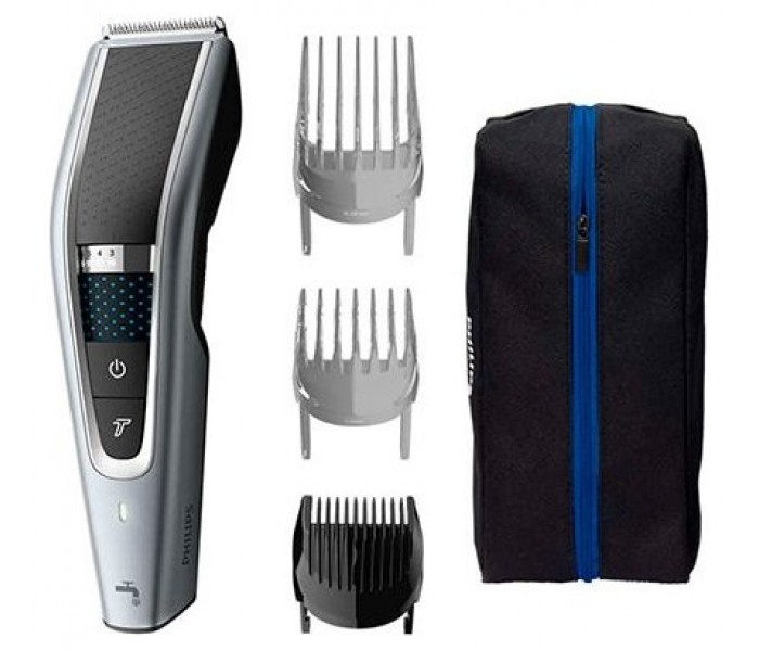 Consigue un corte de pelo uniforme gracias a la tecnologÃa DualCut y Trim-n-Flow Pro. El nuevo diseño del peine-guÃa evita que el pelo de cualquier longitud se atasque, para que puedas terminar el peinado de una pasada. El innovador diseño del peine-guÃa permite que el cabello cortado quede alejado de las cuchillas mientras se está usando, lo que evita que incluso los cabellos de mayor longitud se atasquen en el peine-guÃa. Asà podrás comenzar y terminar tu peinado sin interrupciones. Gira la rueda de ajuste de longitud de corte y bloquee la longitud que deseas. Los dos peines-guÃa ajustables cortan entre 3 mm y 28 mm, con una precisión de 1 mm entre cada longitud. Utiliza el peine-guÃa para la barba de 2 mm para cortar pelos cortos o para perfilar tu barba. Retira el peine-guÃa para un corte apurado de 0,5 mm. El cortapelos es resistente al agua, para una fácil limpieza sin complicaciones debajo del grifo. Enjuaga bien solo con agua para que el cortapelos siga funcionando como el primer dÃa. El cortapelos Series 5000 ha sido diseñado con facilidad de uso, comodidad de manejo y sencillez de funcionamiento. La textura especial y el mango permiten mover fácilmente el cortapelos y recortar por toda la cabeza. Mantén el cortapelos, los peines-guÃa y los accesorios organizados en el estuche resistente.
