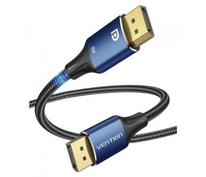 Cable DP macho a macho HD trenzado de algodón 8K tipo aleación de aluminio azul