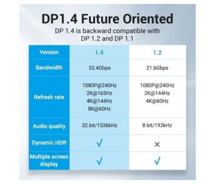 No es solo un cable, es una inversión en la mejor experiencia visual. Actualice al cable DisplayPort 1.4 8K y acceda a un mundo de claridad impresionante, rendimiento inigualable y entretenimiento envolvente