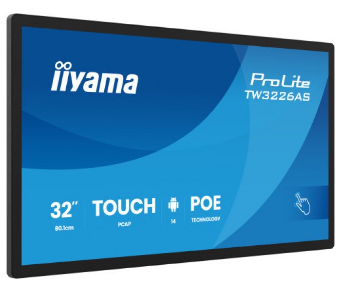 IIYAMA 32" PANEL-PC ANDROID 14+GMS, SOC OCTO-CORE RK3576 4GB, 32GB, 10-POINTS TOUCH, 1920X1080, VA PANEL, SPEAKERS, MIC, POE, WIFI, BT5.3, MICRO-SD SLOT, HDMI-IN, 3X USB, 430CD/M2, IISIGNAGE2 SUPPORTED, FLUSH WALL-MOUNT INCLUDED (TW3226AS-B3P) (Esper