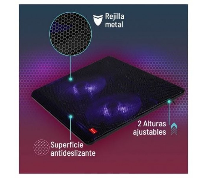 Soporte Refrigerante NGS Hero Stand para Portátiles hasta 15.6"/ Iluminación LEDBase Refrigeradora p..