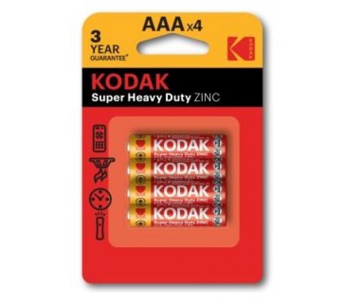 PILAS AAA KODAK EXTRA HEAVY DUTY ZINC LR3 PACK 4 UNIDADES 450 mAh 1.5V (ecotasas incluidas)