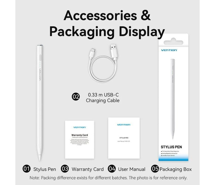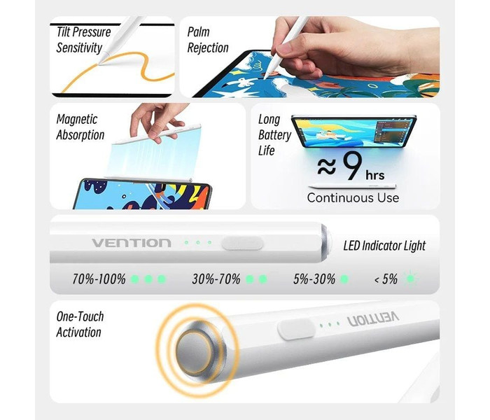 Vention Lápiz óptico para iPad con rechazo de palma e interruptor táctil, color blanco