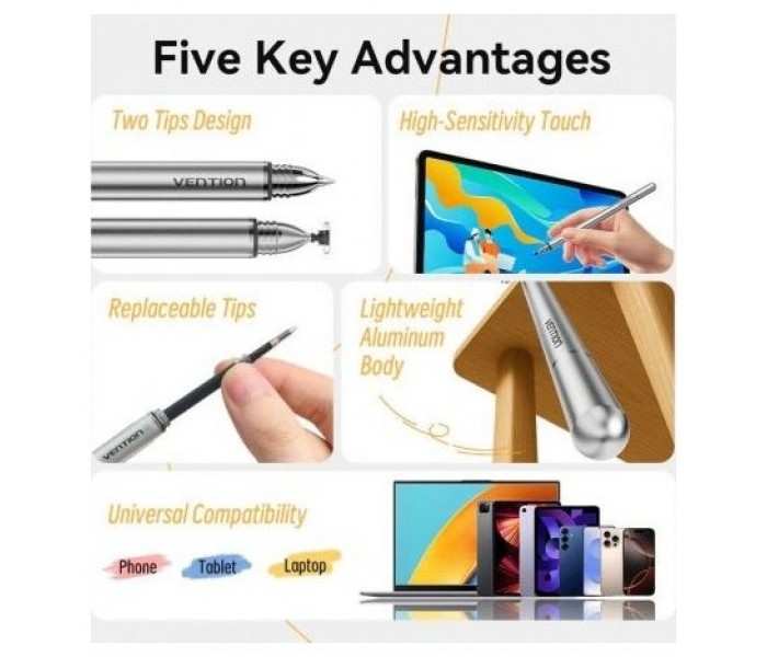 Lápiz óptico Vention 2 en 1 de aleación de aluminio gris