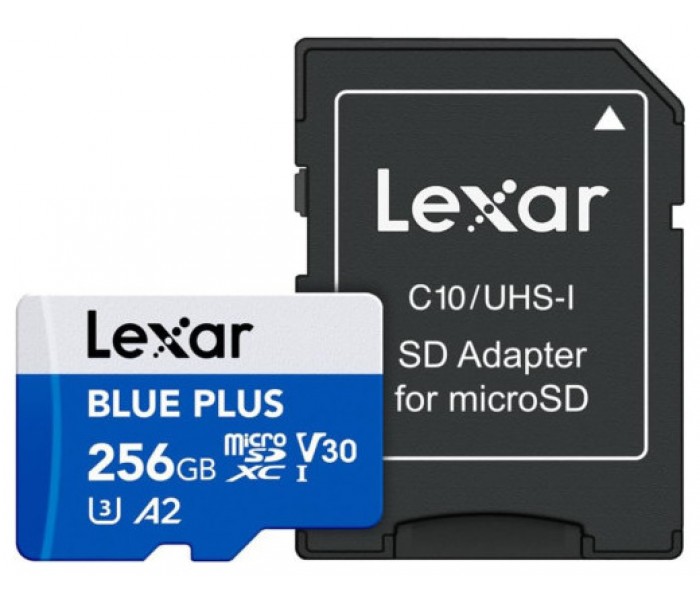 LEXAR 256GB BLUE PLUS MICROSDHC UHS-I WITH SD ADAPTER, UP TO 170MB/s READ C10 A2 V30 U3 (Espera 4 dias)