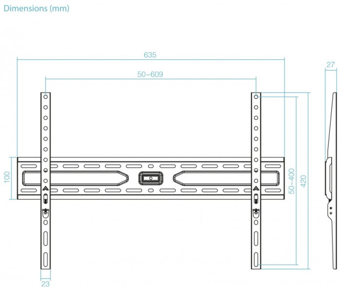 - Compatible con VESA: 50x50, 75x75, 100x100, 100x150, 150x100, 100x200, 200x100, 150x150, 200x200, 200x300x, 300x200, 200x400x, 400x200, 300x300, 300x400, 400x300, 600x200, 500x300, 400x400, 600x300, 500x400, 600x400