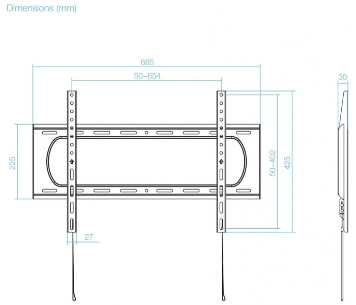 - Compatible con VESA: 50x50, 75x75, 100x100, 100x150, 150x100, 100x200, 200x100, 150x150, 200x200, 200x300, 300x200, 200x400, 400x200, 300x300, 300x400, 400x300, 600x200, 400x400, 600x300, 600x400