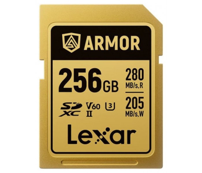 LEXAR 256GB PROFESSIONAL ARMOR GOLD SDXC UHS-II CARDS, UP TO 280MB/S READ 210MB/S WRITE C10 V60 U3,STAINLESS STEEL CASING, IP68