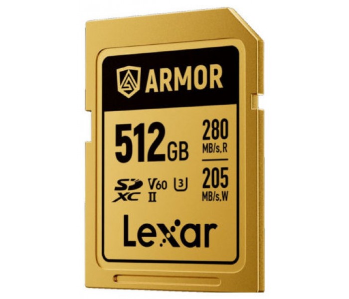 LEXAR 512GB PROFESSIONAL ARMOR GOLD SDXC UHS-II CARDS, UP TO 280MB/S READ 210MB/S WRITE C10 V60 U3,STAINLESS STEEL CASING, IP68.