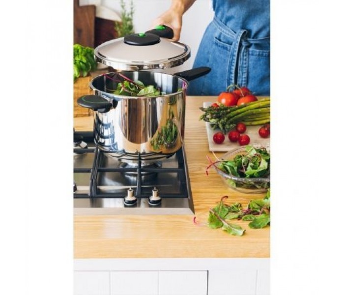 - La olla a presión sin complicaciones para el día a día en tu cocina. Compatible con todas las fuentes de calor, incluida la inducción.