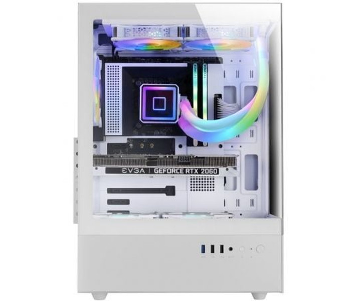Caja ATX con paneles laterales y frontales de cristl continuo sin marco. Ventiladore trasero FDB FRGB de 120mm ultra silencioso y sistema de refrigeración SIDECOOL. Estructura de doble cámara y sistema de gestión de cableado interno. Soporte para refrigeración líquida de hasta 280mm y capacidad para hasta 5 ventiladores. Características principales:. Tipo: Semitorre. Diseño: Ventana lateral y frontal de cristal templado continuo. Placas base: ATX / MicroATX / Mini ITX. Ventiladores: Superior: 2x 140mm o 2x 120mm / Inferior: 2x 120mm / Trasero: 1x 120mm (incluido) . Refrigeración líquida: Interior : 280, 240, 120 mm / Trasero: 120mm . Bahías: 1x 3.5"" HDD + 3x 2.5"" SSD. Ranuras de expansión: 7. VGA Máxima: 328mm. VGA anchura máxima: 153mm. CPU max: 163mm. Puerto I/O : USB 3.0 x1 / USB2.0 x1 / HD Audio+ Mic (mezclado). Extras: Estructura de doble cámara y sistema de gestión de cableado interno. Dimensiones: 487x214x350mm. Peso: 4.45Kg
