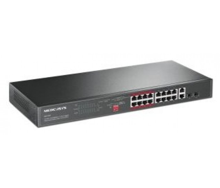 SWITCH NO GESTIONABLE MERCUSYS MS118CP 18P 16xRJ45 100Mbps PoE+ 2x1Gbps 2xSFP 1Gbps ENRACKABLE