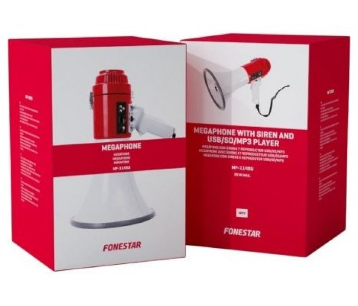 Megáfono con sirena Fonestar MF-600SGU/ 25W/ USB/ SD/ a Batería/ a Pilas/ a 12V CCMegáfono portátil ..