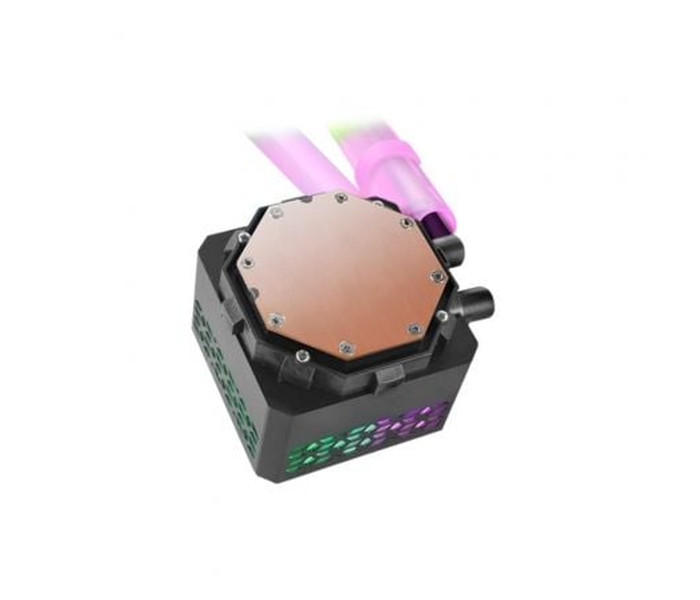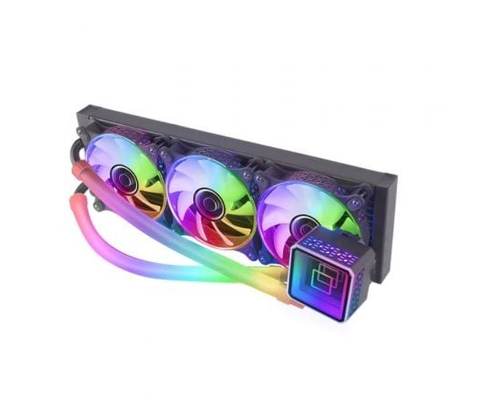 Especificaciones:. . TDP: 650W. Tubos: 370mm / Teflón. Radiador: 397x120x27mm / Aluminio. Iluminación: RGB Addressable +5V 3 pin + VDG 3 pin. RGB Addressable: Asus Aura Sync, MSI Mystic Light Sync, RGB / Fusion y controladores estándar ARGB. CPU Socket: . INTEL LGA 2066/2011/1700/1200/1156/1155/. 1151/1150 y AMD sTRX4/sTR4/SP3/AM5/. AM4/AM3+/ AM3/AM2+/AM2/FM2/FM1. Peso total: 1350g. BOMBA. Dimensiones: 69x89x55mm. Velocidad: 3200 RPM±10%. Nivel sonoro: 15 dBA. Conector: PWM 4 pin. VENTILADOR. Dimensiones: 120x120x25mm. Velocidad: 600-1800 ± 10% RPM. Nivel sonoro: 9-26 dBA. Flujo de aire: 27.2-69.2 CFM. Conector: PWM 4 pin