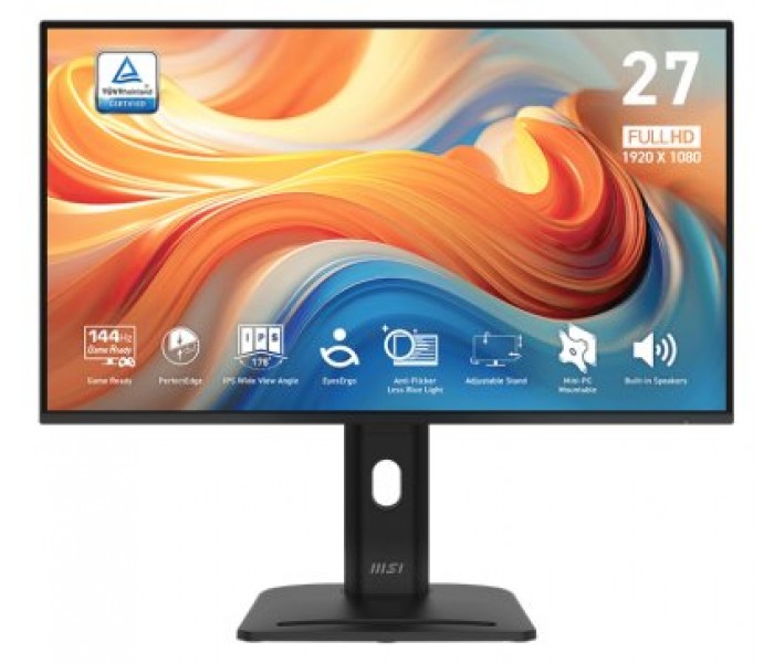 MSI PRO MP275PG E14. Diagonal de la pantalla: 68,6 cm (27"), Resolución de la pantalla: 1920 x 1080 Pixeles, Tipo HD: Full HD, Tecnología de visualización: LCD, Tiempo de respuesta: 4 ms, Relación de aspecto nativa: 16:9, Ángulo de visión, horizontal: 178°, Ángulo de visión, vertical: 178°. Altavoces incorporados. montaje VESA, Ajustes de altura. Color del producto: Negro