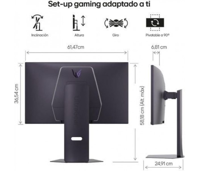 LG 27G850A-B.AEU. Diagonal de la pantalla: 68,6 cm (27"), Resolución de la pantalla: 3840 x 2160 Pixeles, Tipo HD: 4K Ultra HD, Tiempo de respuesta: 1 ms, Relación de aspecto nativa: 16:9, Ángulo de visión, horizontal: 178°, Ángulo de visión, vertical: 178°. Conector USB incorporado, Versión de conector USB: 3.2 Gen 1 (3.1 Gen 1). montaje VESA, Ajustes de altura. Color del producto: Negro