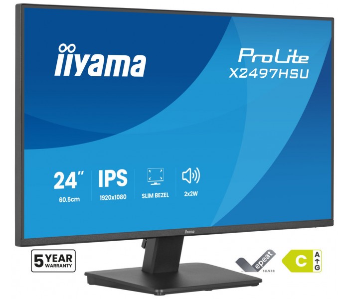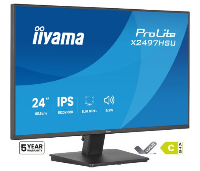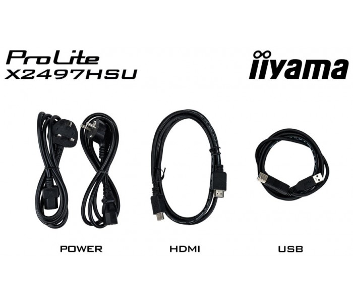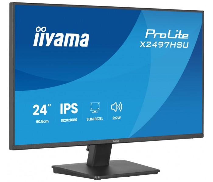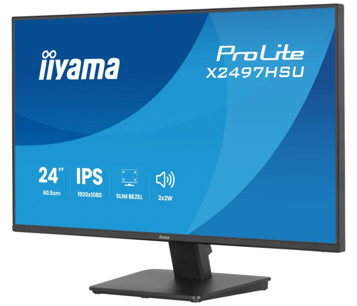 iiyama ProLite X2497HSU-B1. Diagonal de la pantalla: 60,5 cm (23.8"), Resolución de la pantalla: 1920 x 1080 Pixeles, Tipo HD: Full HD, Tecnología de visualización: LED, Superficie de la pantalla: Mate, Tiempo de respuesta: 4 ms, Relación de aspecto nativa: 16:9, Ángulo de visión, horizontal: 178°, Ángulo de visión, vertical: 178°. Altavoces incorporados. Conector USB incorporado, Versión de conector USB: 3.2 Gen 1 (3.1 Gen 1). montaje VESA. Color del producto: Negro