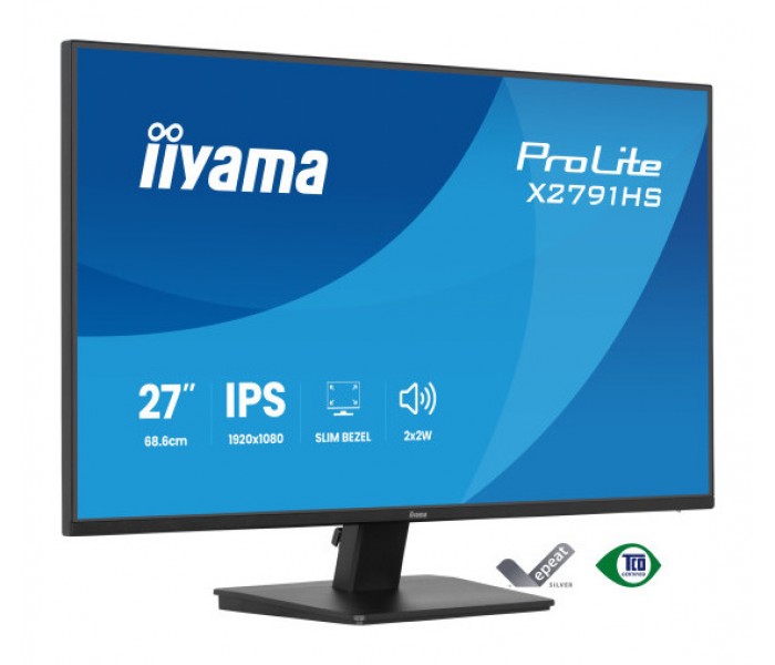 iiyama ProLite X2791HS-B1. Diagonal de la pantalla: 68,6 cm (27"), Resolución de la pantalla: 1920 x 1080 Pixeles, Tipo HD: Full HD, Superficie de la pantalla: Mate, Relación de aspecto nativa: 16:9, Ángulo de visión, horizontal: 178°, Ángulo de visión, vertical: 178°. Altavoces incorporados. montaje VESA. Color del producto: Negro