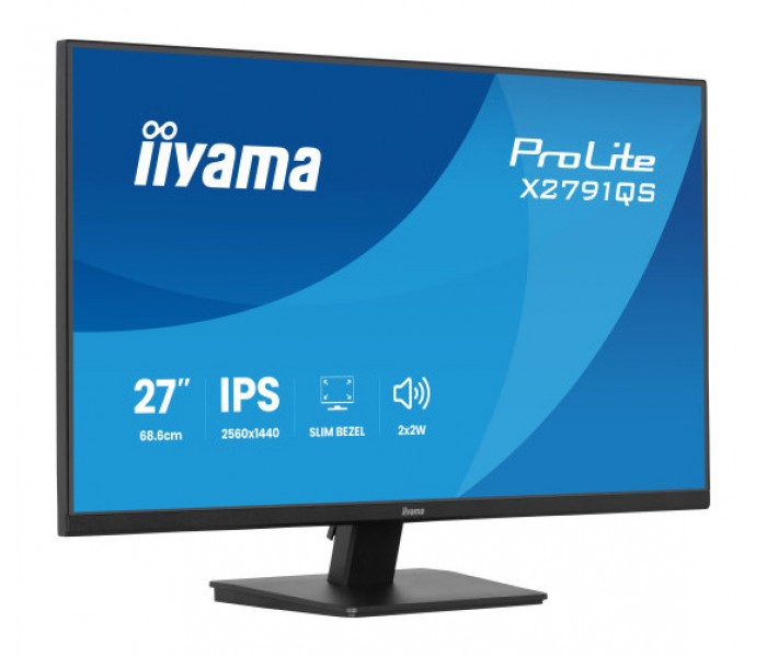 iiyama ProLite X2791QS-B1. Diagonal de la pantalla: 68,6 cm (27"), Resolución de la pantalla: 2560 x 1440 Pixeles, Tipo HD: Quad HD, Superficie de la pantalla: Mate, Relación de aspecto nativa: 16:9, Ángulo de visión, horizontal: 178°, Ángulo de visión, vertical: 178°. Altavoces incorporados. montaje VESA. Color del producto: Negro