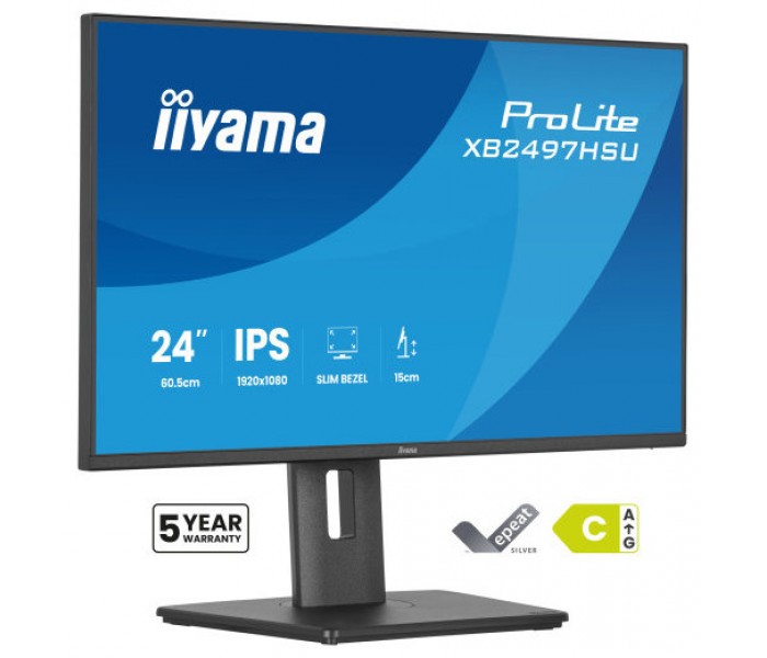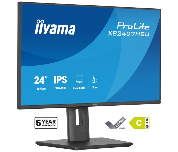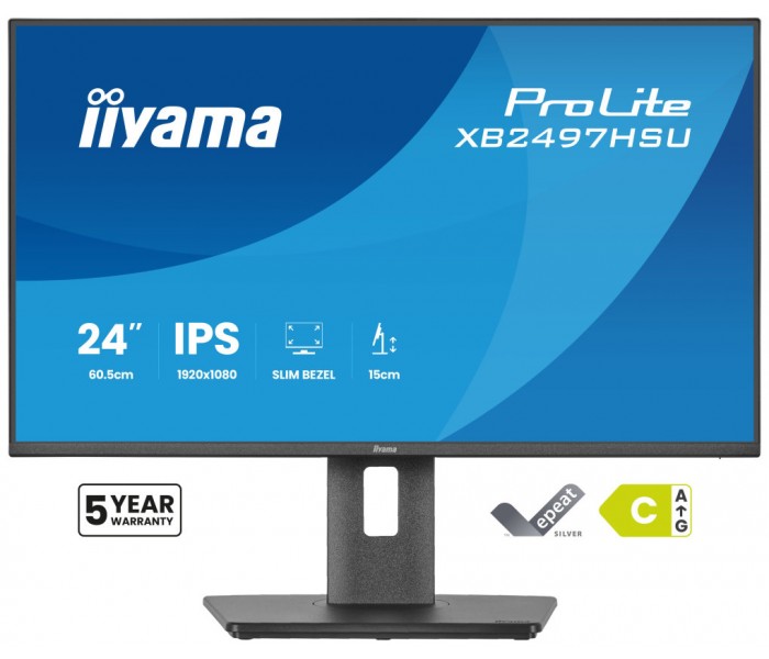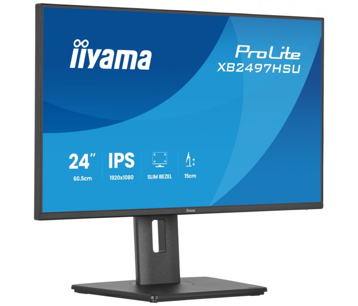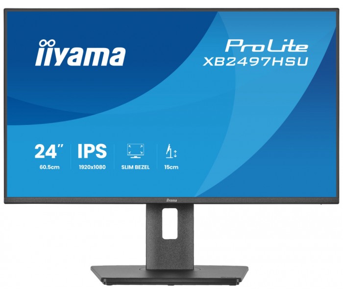 iiyama ProLite XB2497HSU-B1. Diagonal de la pantalla: 60,5 cm (23.8"), Resolución de la pantalla: 1920 x 1080 Pixeles, Tipo HD: Full HD, Tecnología de visualización: LED, Superficie de la pantalla: Mate, Tiempo de respuesta: 4 ms, Relación de aspecto nativa: 16:9, Ángulo de visión, horizontal: 178°, Ángulo de visión, vertical: 178°. Altavoces incorporados. Conector USB incorporado, Versión de conector USB: 3.2 Gen 1 (3.1 Gen 1). montaje VESA, Ajustes de altura. Color del producto: Negro
