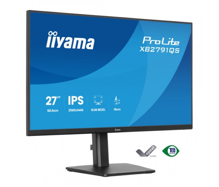 iiyama ProLite XB2791QS-B1. Diagonal de la pantalla: 68,6 cm (27"), Resolución de la pantalla: 2560 x 1440 Pixeles, Tipo HD: Quad HD, Superficie de la pantalla: Mate, Relación de aspecto nativa: 16:9, Ángulo de visión, horizontal: 178°, Ángulo de visión, vertical: 178°. Altavoces incorporados. montaje VESA, Ajustes de altura. Color del producto: Negro