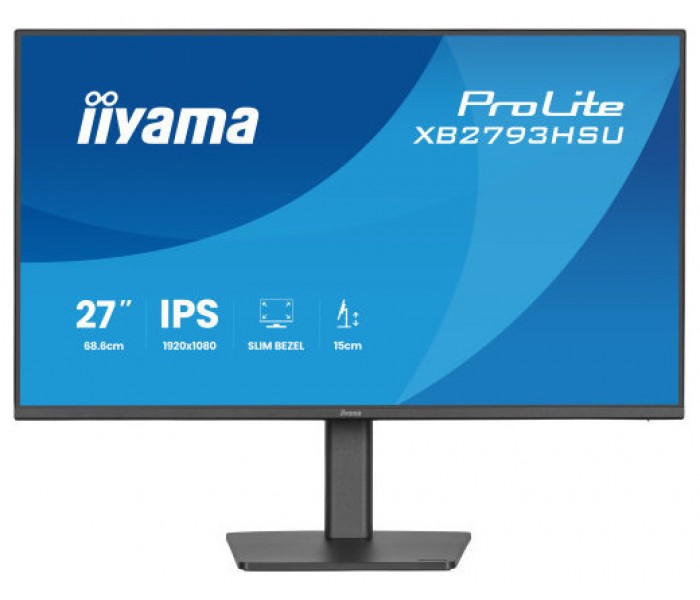 iiyama ProLite XB2793HSU-B1. Diagonal de la pantalla: 68,6 cm (27"), Resolución de la pantalla: 1920 x 1080 Pixeles, Tipo HD: Full HD, Tecnología de visualización: LED, Superficie de la pantalla: Mate, Tiempo de respuesta: 1 ms, Relación de aspecto nativa: 16:9, Ángulo de visión, horizontal: 178°, Ángulo de visión, vertical: 178°. Altavoces incorporados. Conector USB incorporado, Versión de conector USB: 2.0. montaje VESA, Ajustes de altura. Color del producto: Negro