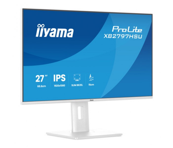 iiyama ProLite XB2797HSU-W1. Diagonal de la pantalla: 68,6 cm (27"), Resolución de la pantalla: 1920 x 1080 Pixeles, Tipo HD: Full HD, Superficie de la pantalla: Mate, Relación de aspecto nativa: 16:9, Ángulo de visión, horizontal: 178°, Ángulo de visión, vertical: 178°. Altavoces incorporados. Conector USB incorporado, Versión de conector USB: 3.2 Gen 1 (3.1 Gen 1). montaje VESA, Ajustes de altura. Color del producto: Blanco
