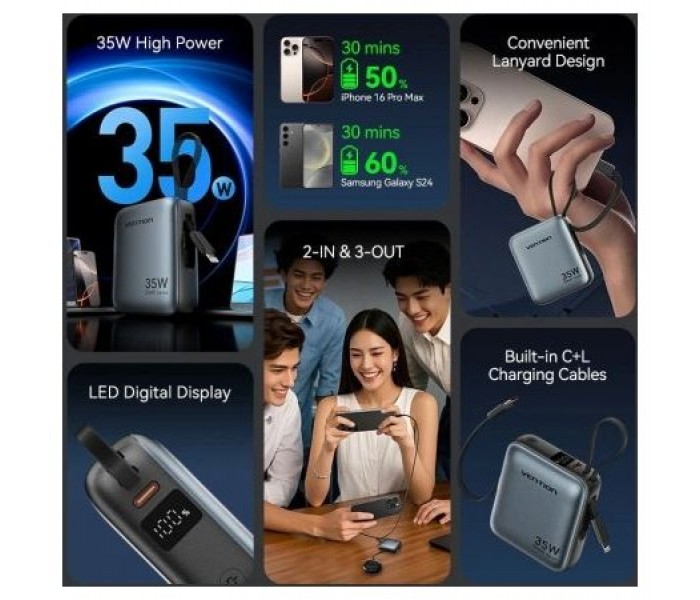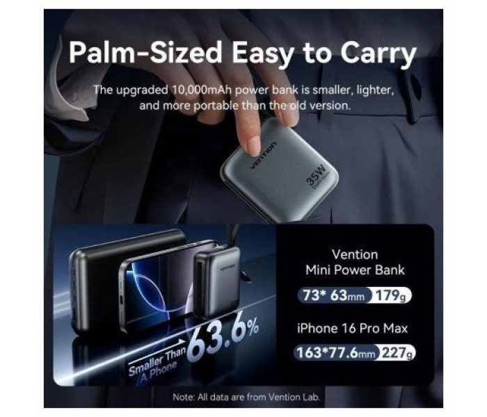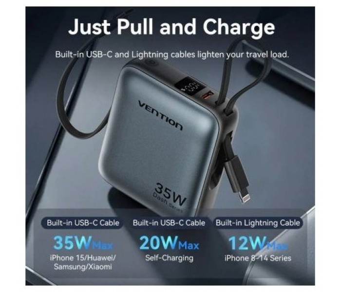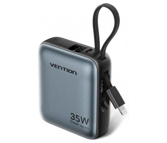 Vention Mini banco de energía de 10000 mAh (USB-C + USB-C/Lightning) con cables USB-C y Lightning integrados, 35 W, gris