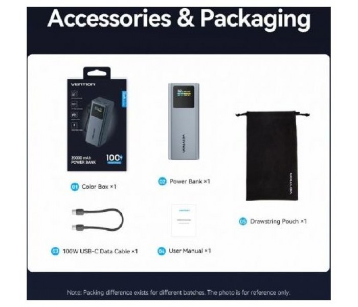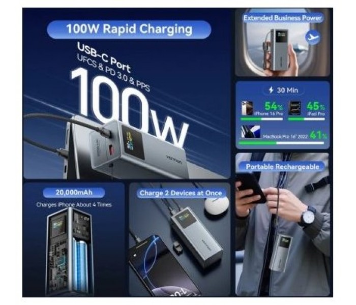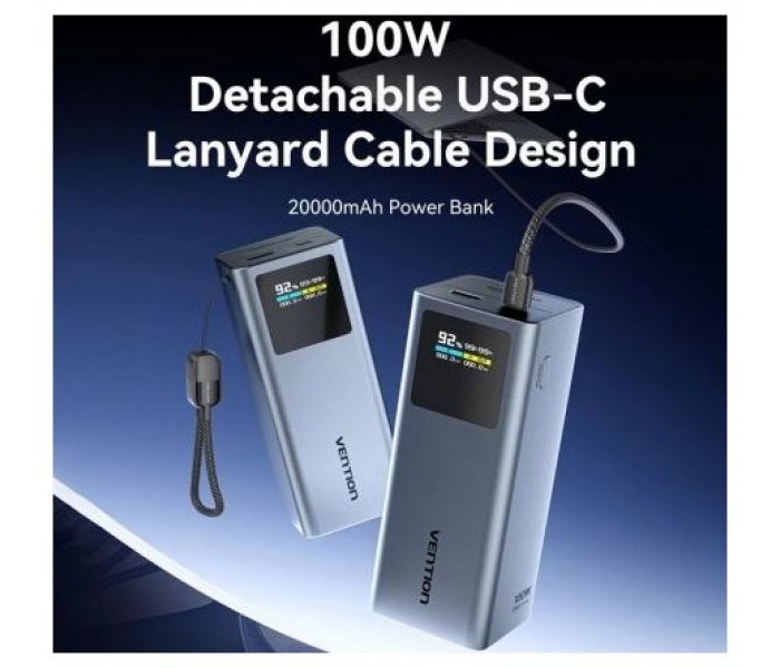 Powerbank 20000mAh Vention FKCH0/ 100W/ Gris/ Incluye Cable USB Tipo-C20000mAh Power Bank (USB-C + U..