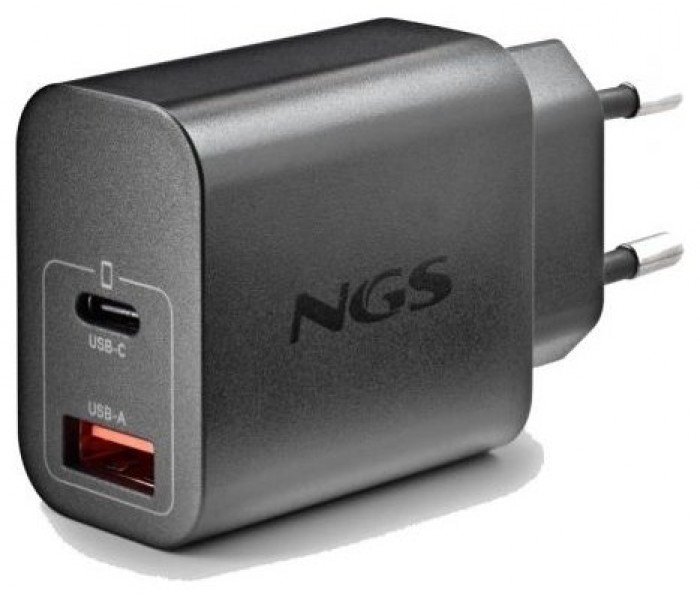 - Cargador GaN de pared con una salida USB-C (PD & PPS) y una salida USB-A QC 3.0 de 20W de potencia máxima.