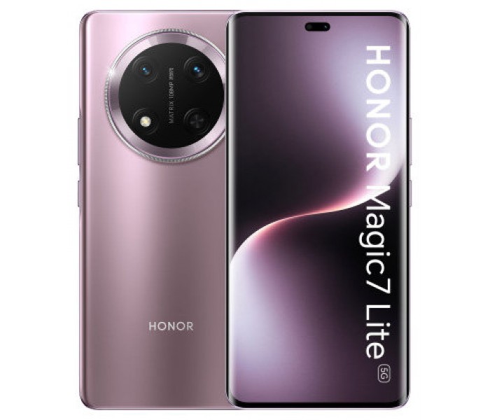 Honor Magic7 Lite 5G. Diagonal de la pantalla: 17,2 cm (6.78"), Resolución de la pantalla: 2700 x 1224 Pixeles. Familia de procesador: Qualcomm Snapdragon, Modelo del procesador: 6 Gen 1. Capacidad de RAM: 8 GB, Capacidad de almacenamiento interno: 512 GB. Resolución de la cámara trasera (numérica): 108 MP, Tipo de cámara trasera: Cámara doble. Capacidad de la tarjeta SIM: SIM doble. Sistema operativo instalado: Android 14. Capacidad de batería: 6600 mAh. Color del producto: Púrpura. Peso: 189 g