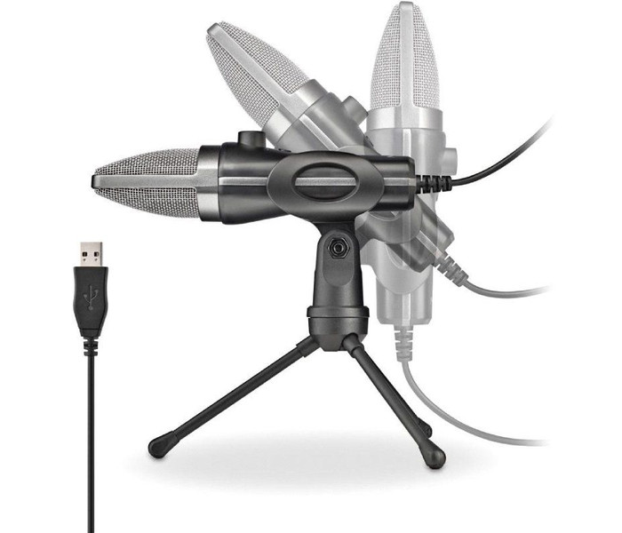 Micrófono USB con soporte de trípode. Ideal para PC o portátil.