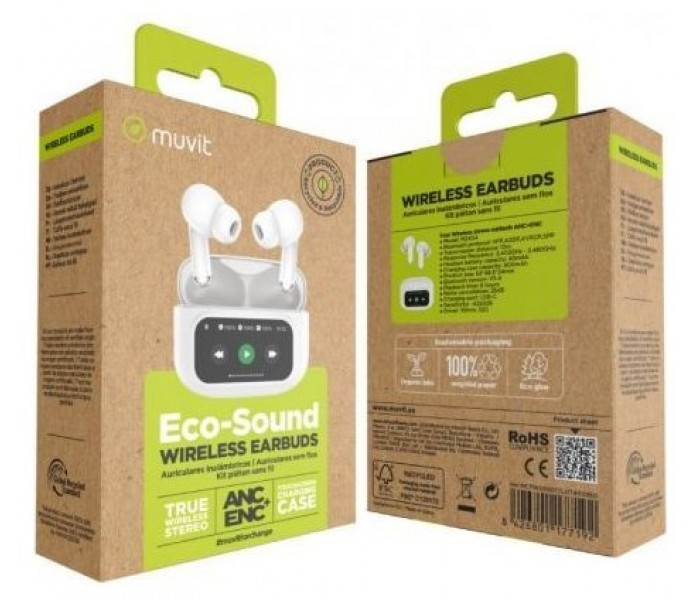 Auriculares True Wireless Blancos muvit for change con Pantalla, ANC y ENC