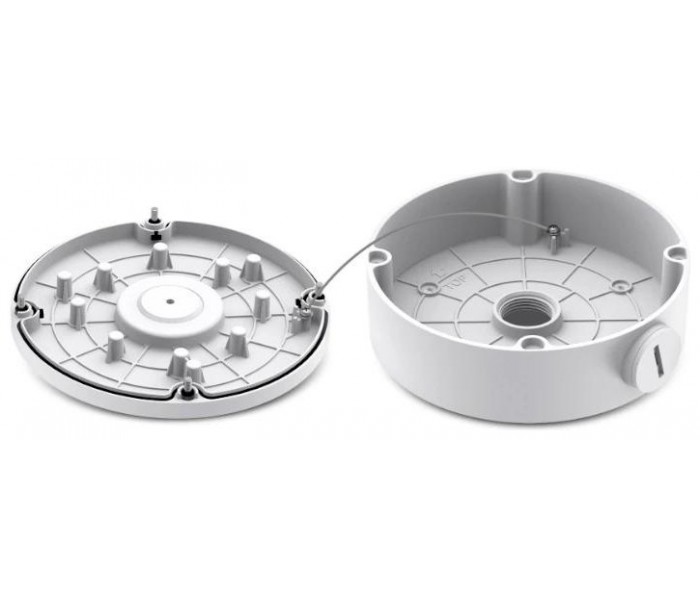 | Características | - Diseño para ocultar cables - Estructura de aluminio resistente al agua - Compatible con cámaras domo, bala y torreta específicas - Apto para montaje en pared o techo, tanto en interiores como en exteriores - Material: Aleación de aluminio Dimensiones y peso - 155,56 × 150 × 51 mm - 416 g Contenido - Caja de conexiones - Accesorios de montaje - Accesorios impermeables |