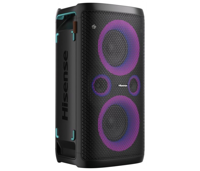 Hisense Party Storm. Potencia estimada RMS: 300 W, Rango de frecuencia: 50 - 60 Hz. Tecnología de conectividad: Inalámbrico. Tipo de producto: Altavoz para fiestas, Color del producto: Negro, Funciones de protección: Resistente al agua. Uso recomendado: Universal. Tipo de batería: Batería integrada, Capacidad de batería: 7650 mAh, Autonomía: 15 h