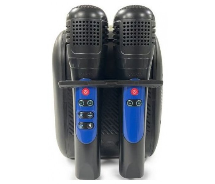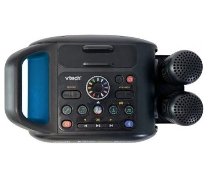 - Dos micrófonos para cantar a dúo, con 4 botones con efecto vibrato, efecto que simula coros y efectos para modificar la voz.