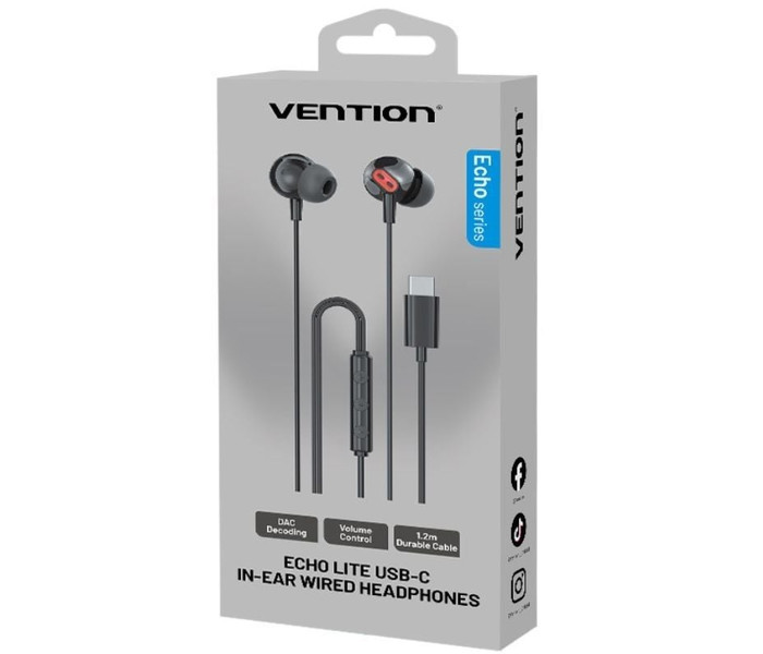 Vention Auricular con cable USB-C ECHO LITE con DAC 1.2m GBBBAV Negro